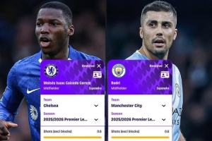 罗德里(曼城):射门0.6次、创造机会1.7次、抢断2.6次,成功过人0.5次、地面对抗成功率77.78%、成功对抗6.9次,空中对抗成功率63.21%,拦截1次、夺回球权6.6次