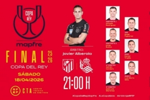 体育资讯4月13日讯 北京时间4月19日凌晨3:00,西班牙国王杯决赛,马竞将对阵皇家社会。西班牙足协官方今日公布了本场比赛的裁判组,哈维尔·阿韦洛亚执法。