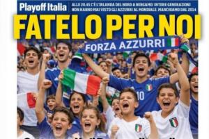 体育资讯03月26日讯 北京时间明天凌晨3:45,世预赛欧洲区附加赛半决赛意大利将面对北爱尔兰。《罗马体育报》今天的头版封面用一张AI图片点出了意大利已经连续多年无缘世界杯的残酷事实。